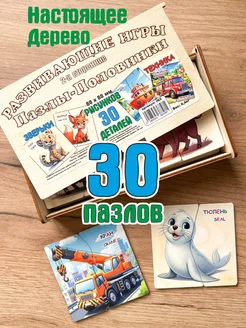 Пазлы для малышей деревянные половинки Звери Техника
