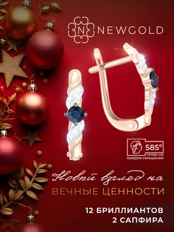 Золотые серьги 585 с натуральными сапфирами и бриллиантами