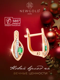 Серьги изумруд золото 585 с натуральными бриллиантами