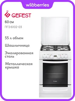 Плита газовая с электродуховкой 55 л, 60 см, ПГЭ 6102-03