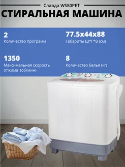 Стиральная машина полуавтомат загрузка 8 кг WS-80PET