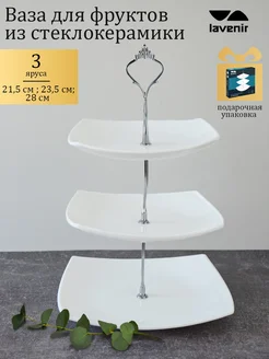 Фруктовница трех ярусная белая стеклокерамика блюдо этажерка
