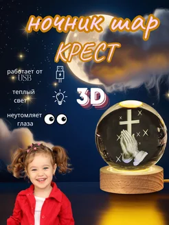 Ночник детский светодиодный стеклянный шар светильник КРЕСТ