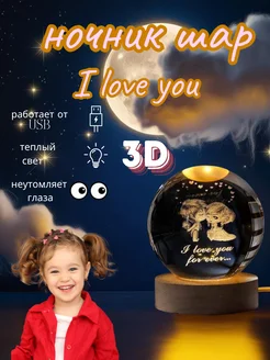Ночник светодиодный стеклянный шар светильник"I love you"