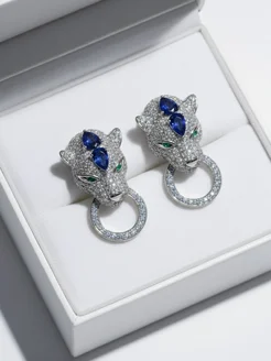 Серьги тигр с кристаллами и подвесками