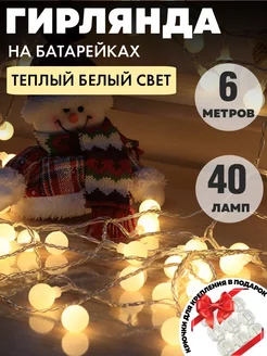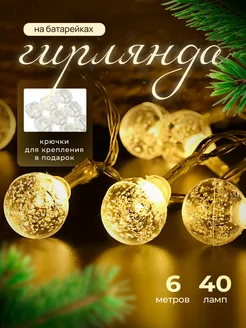Гирлянда новогодняя шарики на батарейках 6м