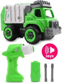 Детская игрушка машина конструктор с шуруповертом Мусоровоз