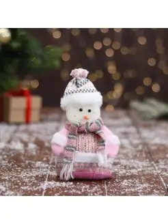 Мягкая игрушка "Снеговик в вязаном костюме" 9х15 см, розовый