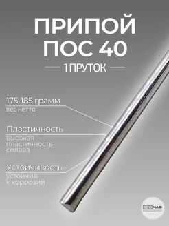Припой ПОС 40 пруток 8 мм, 1 шт