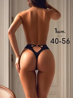 трусы стринги 3 шт кружевные набор черные розовые фиолетовый
