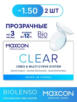 Линзы контактные квартальные для глаз Biolenso Clear -1.50