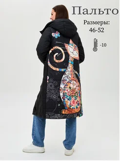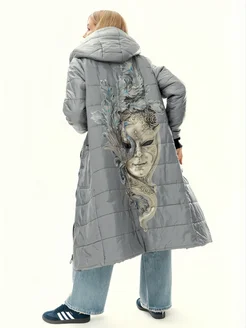 Стеганое пальто с капюшоном куртка удлиненная с принтом