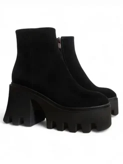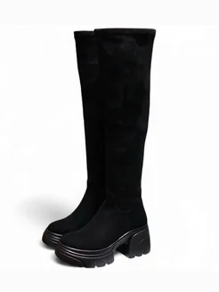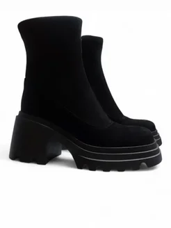 Сапоги демисезонные на невысоком каблуке натуральная кожа