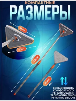Швабра для мытья окон треугольная телескопическая 2 тряпками