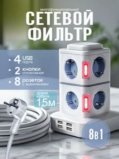 Сетевой фильтр с USB и 8 розеток