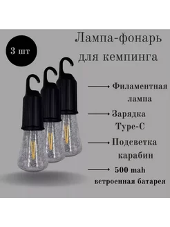 светодиодный фонарь лампочка для кемпинга 3шт