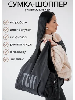 Сумка большая тканевая шоппер через плечо с молнией дорожная