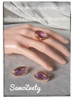 Серьги и перстень кварц лиловый