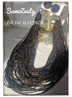 Колье и серьги из шпинели черной многослойное