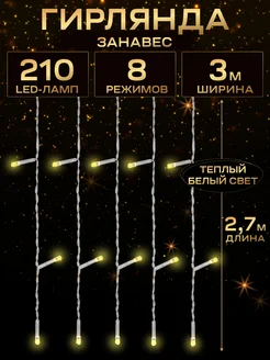 Гирлянда штора новогодняя 3 метра занавес 8 режимов