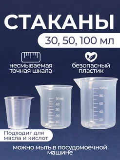Мерные стаканы для кухни и порошка 30, 50 и 100 мл 3 шт