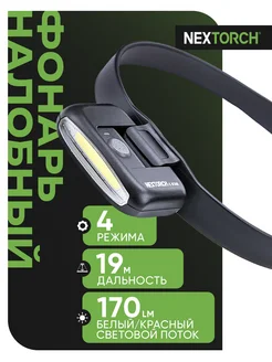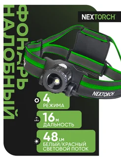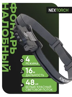 Фонарь налобный аккумуляторный 320 лм, свет белый и красный