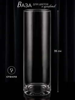 Ваза цилиндр для цветов и сухоцветов стеклянная прозрачная