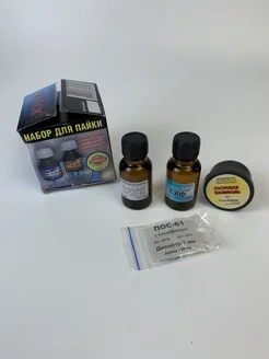 Набор для пайки, 4 предмета (канифоль, кислота, СКФ, припой)