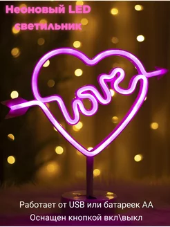 Светильник LED неоновый ночник Love в сердце