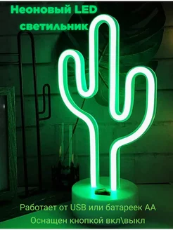 Светильник неоновый ночник Кактус