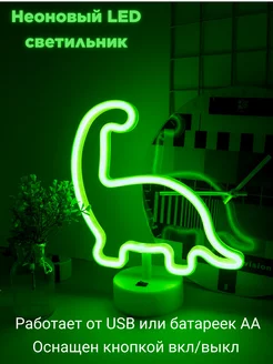 Неоновый LED светильник ночник Динозавр