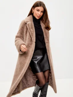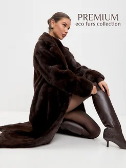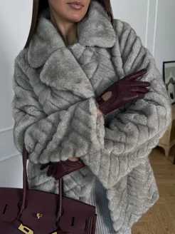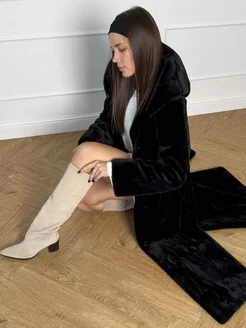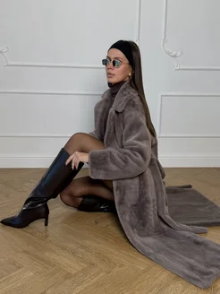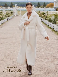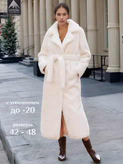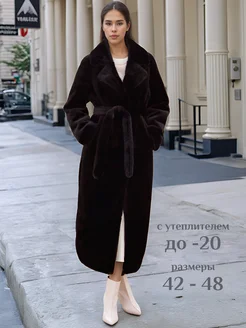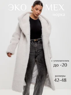 Шуба искусственная зимняя экошуба норка утепленная с поясом