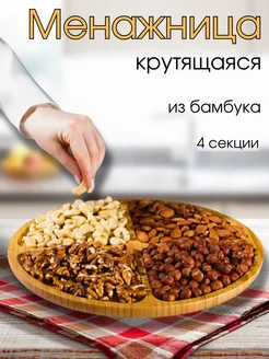 Менажница деревянная 30 см круглая на крутящейся ножке