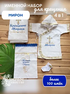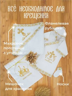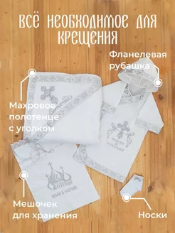 Крестильный комплект теплый крыжма рубашка носочки и мешочек