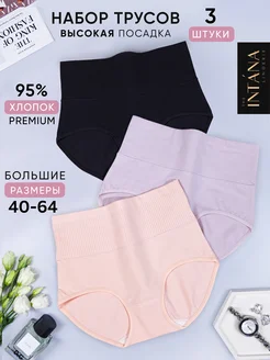 Трусы хлопок с высокой посадкой большие размеры набор 3 шт