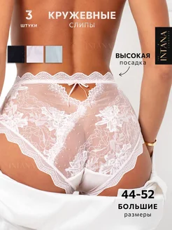 Трусы кружевные слипы с высокой посадкой прозрачные набор