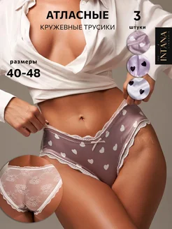 Трусы атласные слипы кружевные красивые прозрачные набор