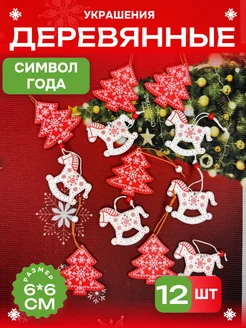 Деревянные елочные игрушки новогодние набор украшений