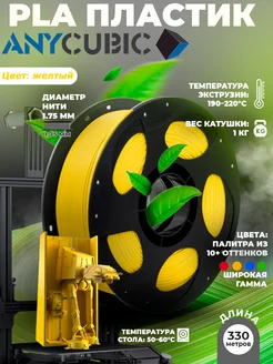 Пластик PLA для 3D принтера, желтый, 1.75 мм