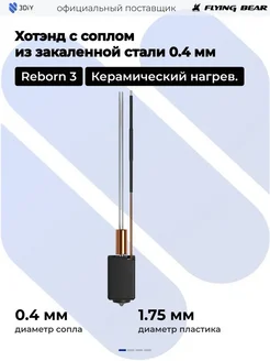 Насадка хотэнда в сборе из закаленной стали Reborn 3, 0.4мм