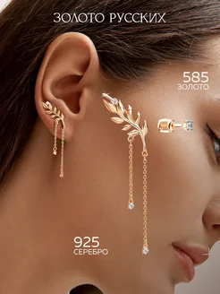 Серьга клаймбер с цепочкой и пусет серебро 925 позолоченные
