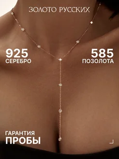 Колье галстук серебро 925 длинное позолоченное с фианитами