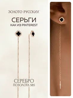 Серьги протяжки с клевером серебро позолоченные 100 мм