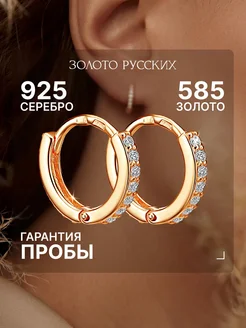Серьги хупы кольца серебро 925 позолоченные