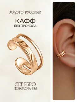 Серьга кафф без прокола серебро 925 позолоченная