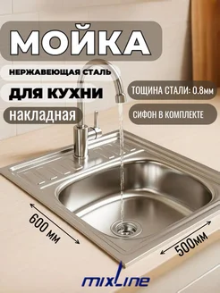 Мойка кухонная накладная из нержавеющей стали 50x60 см