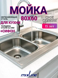 Мойка для кухни нержавейка 60х80 двухчашевая