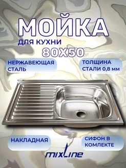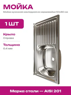 Стальная мойка 50х80 см, накладная, прямоугольная, для кухни