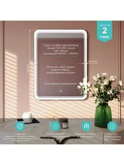 Зеркало настенное с подсветкой прямоугольное 600х800