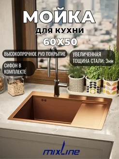 Мойка для кухни нержавейка 60х50 с сифоном бронза
